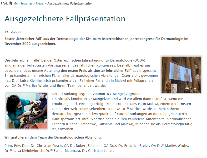 Wruhs M, Esther Mzumara,Robert Feldmann, Matthias Schmuth, Christian Posch
